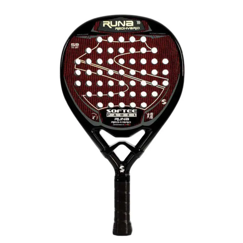La Runa Red Hybrid è l´altra racchetta della linea Runa. Si distingue per la sua forma ibrida e il ponte moderno, così come per la sua composizione in carbonio 3K. Queste caratteristiche favoriscono un´ottima uscita della palla e una grande manovrabilità. È una racchetta perfetta per i giocatori che cercano un equilibrio tra potenza e controllo.