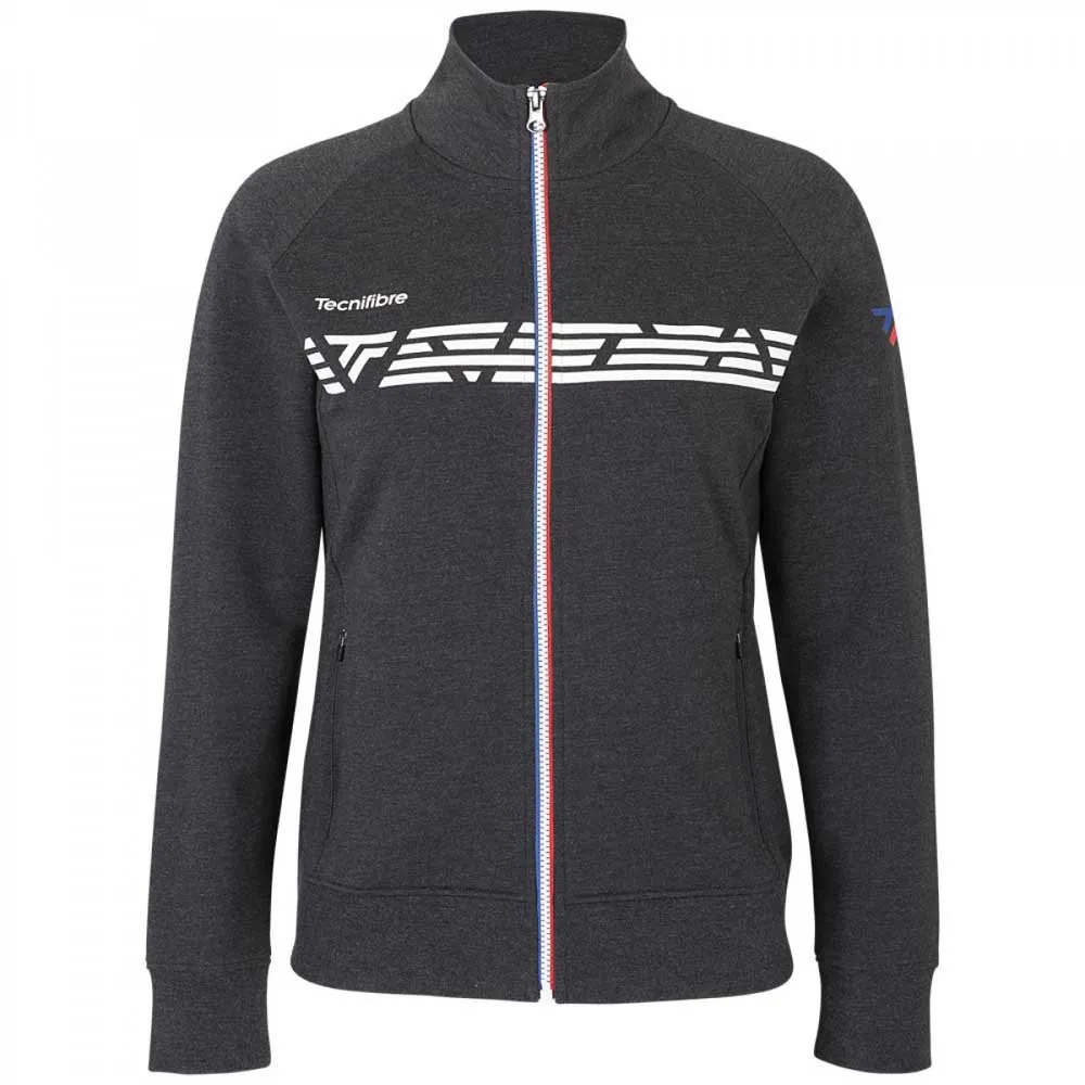 Tessuto French Terry in cotone e poliestere per un equilibrio confortevole / leggero, pur rimanendo caldo. Chiusura lampo blu / bianca / rossa, due tasche laterali con zip. Costina elastica sui fianchi per una migliore vestibilità.