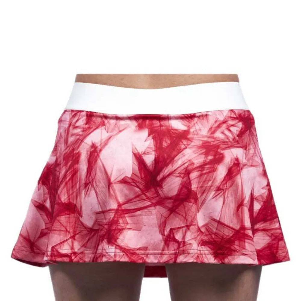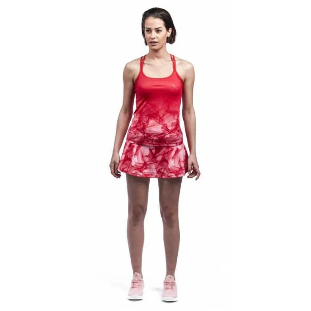 In de nieuwe Drop Shot 2021 padel textielcollectie vinden we de Lyra padel rok, met een innovatief design dat rood en wit combineert, evenals een binnenbroek.