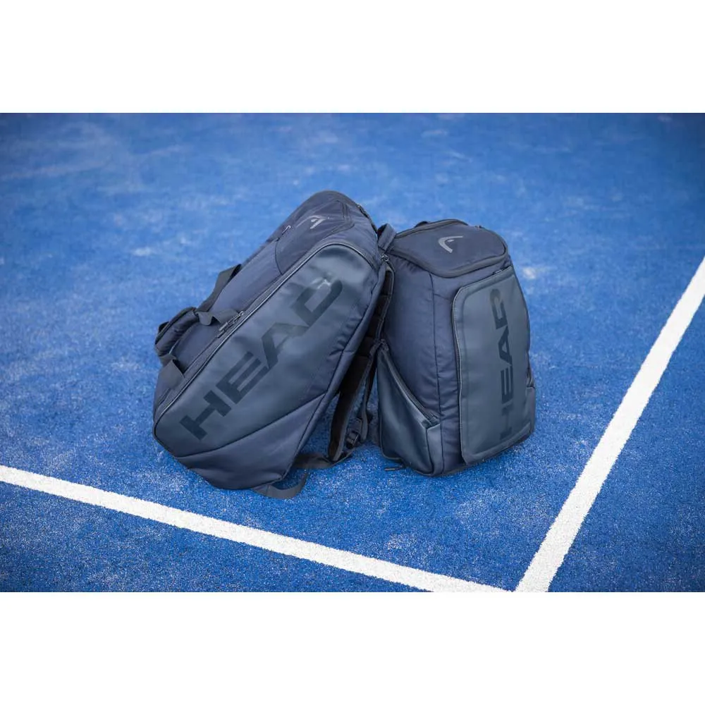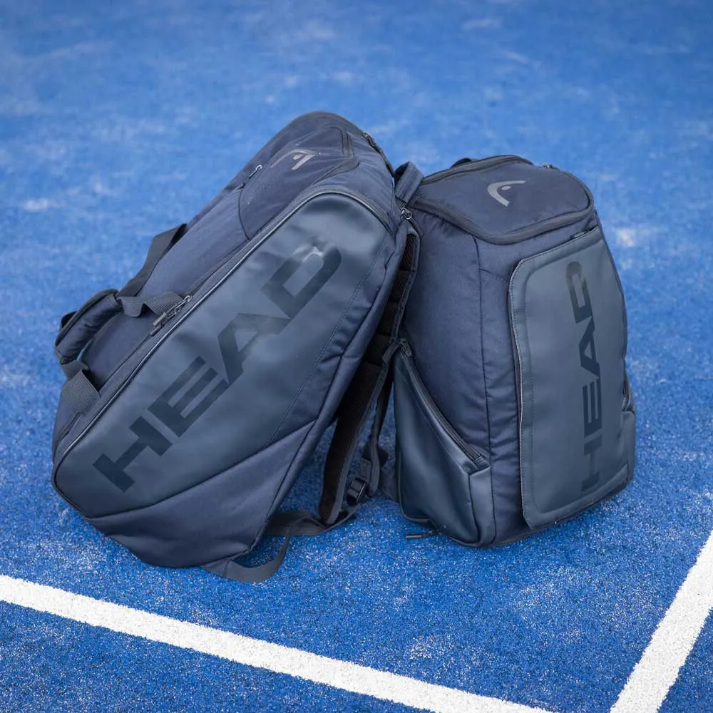 Met zijn strakke marinekleur en hoogwaardige design is de HEAD RACKET Pro Padel Racket Bag het perfecte accessoire voor elke serieuze padelspeler die zijn uitrusting stijlvol wil vervoeren.