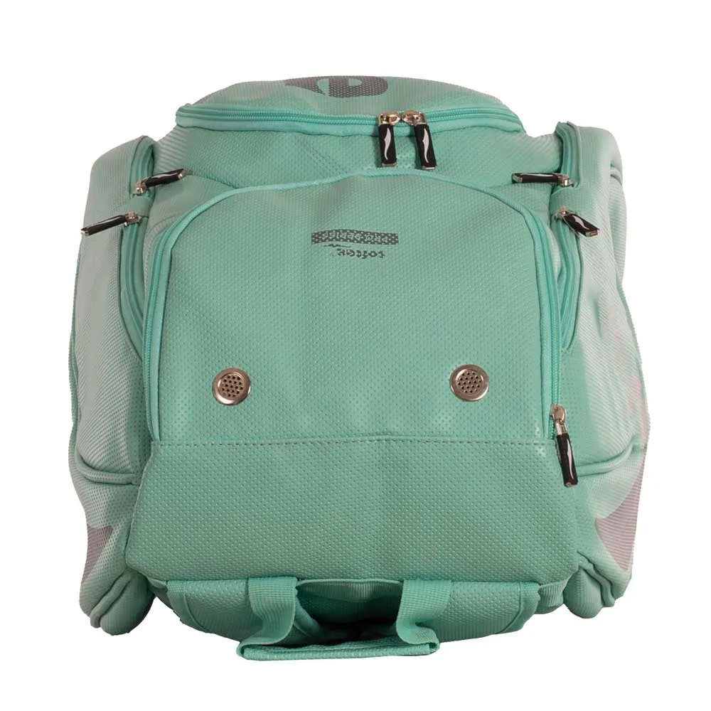 - Ademend schoenenvak ook aan de bovenkant van de tas.