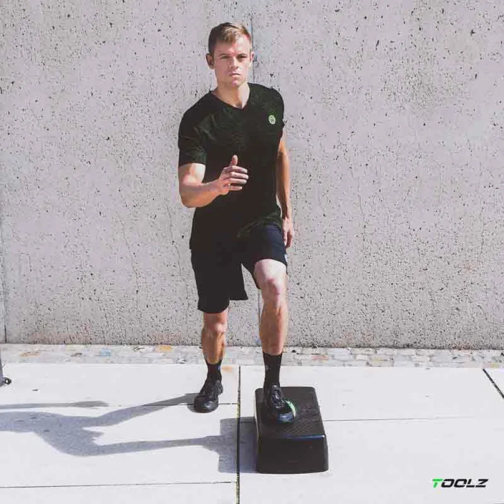 Of het nu voor thuis of de sportschool is, de TOOLZ Power Stepper is de ideale partner voor cardio- en aerobe training. Met gerichte oefeningen kunnen benen, billen en uithoudingsvermogen worden getraind zonder de gewrichten te belasten. Aangezien de stepbank in twee hoogtes verstelbaar is (10 & 15 cm), kan deze individueel worden aangepast aan de trainingsbehoeften. Het geperforeerde oppervlak en de rubberen, gevoerde onderkant voorkomen uitglijden.