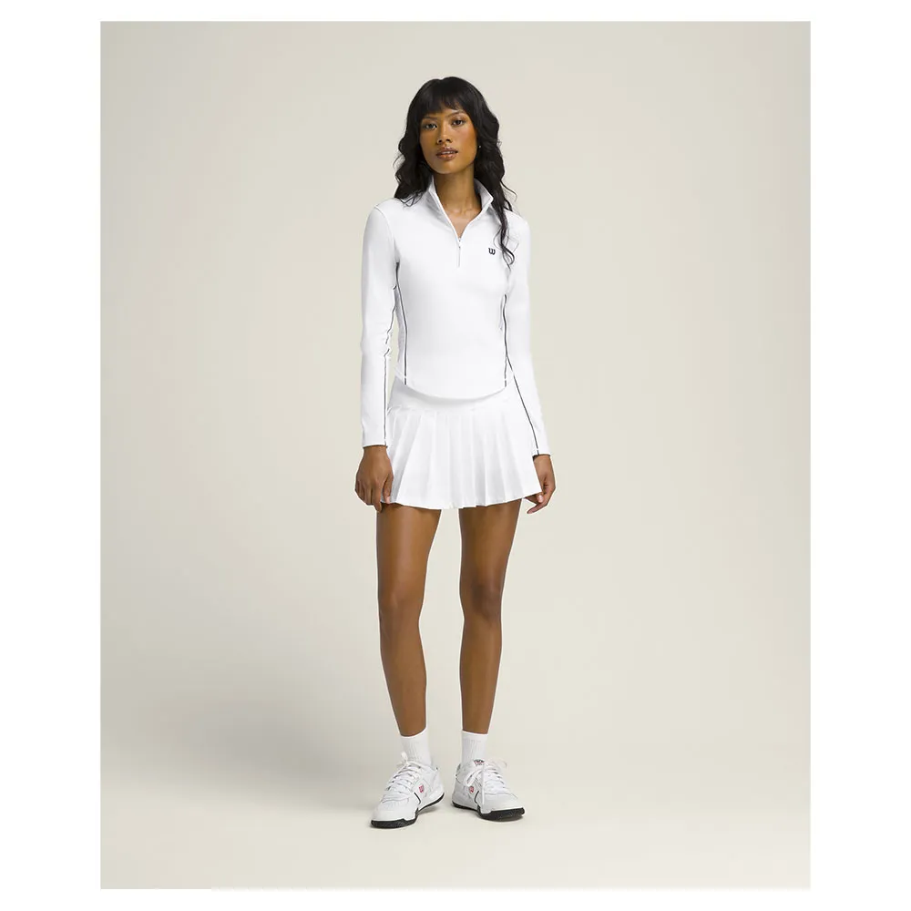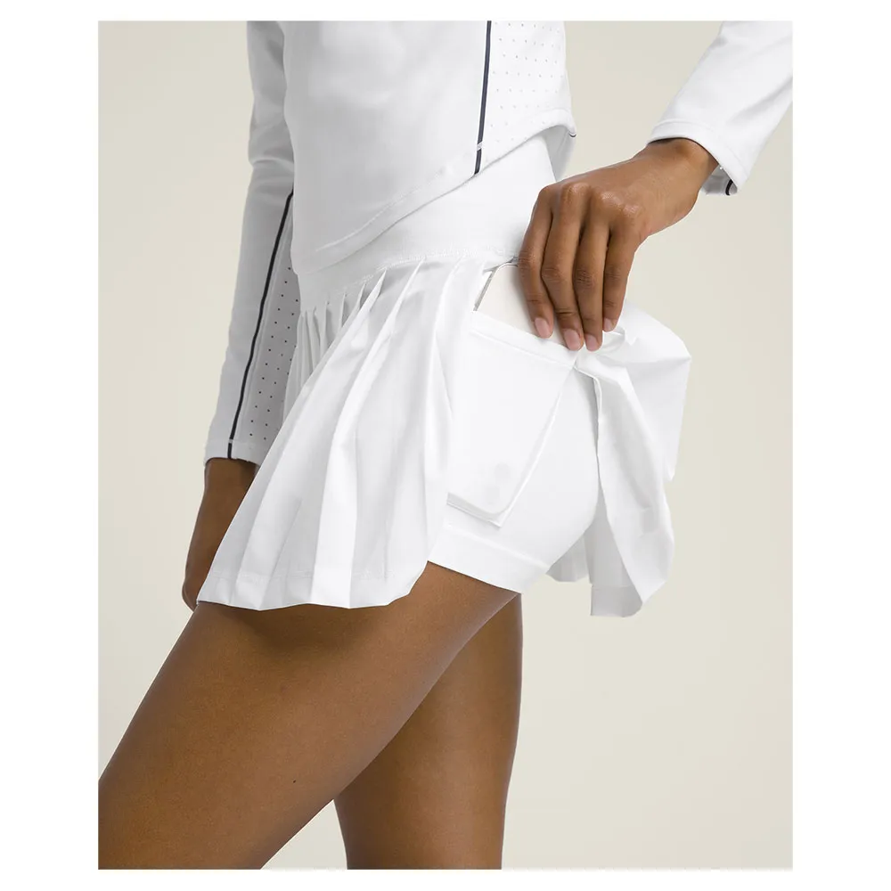 Voortbouwend op een eeuw aan tennisexpertise, herdefinieert de WILSON MidTown Skirt een klassieker. Dit multifunctionele kledingstuk beschikt over een tijdloze geplooide overlay met een naadloze, compressie-binnenshort voor een perfecte, veilige pasvorm. De geavanceerde stof biedt UV-bescherming, is geurwerend en sneldrogend om je koel en comfortabel te houden. Compleet met een gelaagde compressietailleband en een verborgen opbergzakje, is het ontworpen voor topprestaties op de baan en veelzijdige stijl overal elders