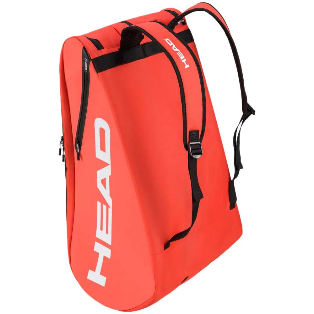HEAD Tour XL Rackettbagen er konstruert av slitesterke materialer, noe som sikrer langvarig holdbarhet og motstandskraft mot slitasje. De forsterkede sømmene og robuste glidelåsene gir ekstra beskyttelse og sikkerhet for utstyret ditt. De justerbare, polstrede skulderstroppene og det ergonomiske bæresystemet fordeler vekten jevnt, noe som gjør det behagelig å transportere selv når den er fullastet. Bærehåndtakene gir ekstra bærealternativer for økt bekvemmelighet.
