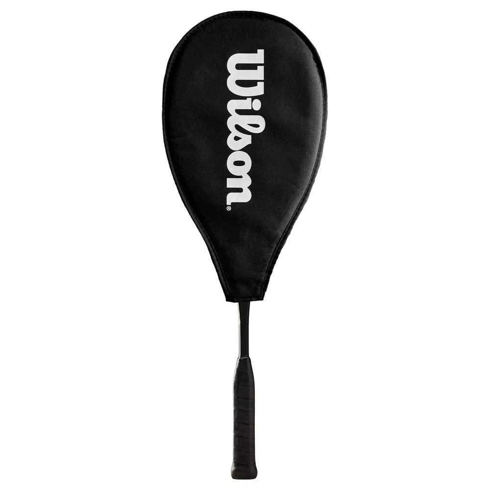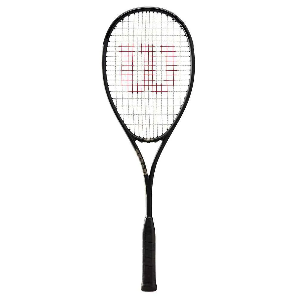 WILSON Pro Staff L Squash Racket i svart/grå er et toppklasseracket designet for profesjonelle squashspillere og entusiaster. Det elegante svarte og grå fargeskjemaet utstråler en følelse av kraft og raffinement.
