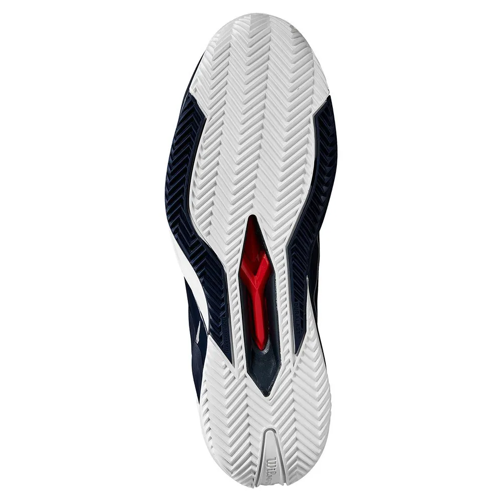 WILSON Rush Pro 4.5 leiresko i Navy Blazer / Navy Blazer / Hvit er høyytelses herretennissko designet for å spille på leirebaner. Disse skoene har en elegant marineblå farge med hvite aksenter for et moderne og stilig utseende.