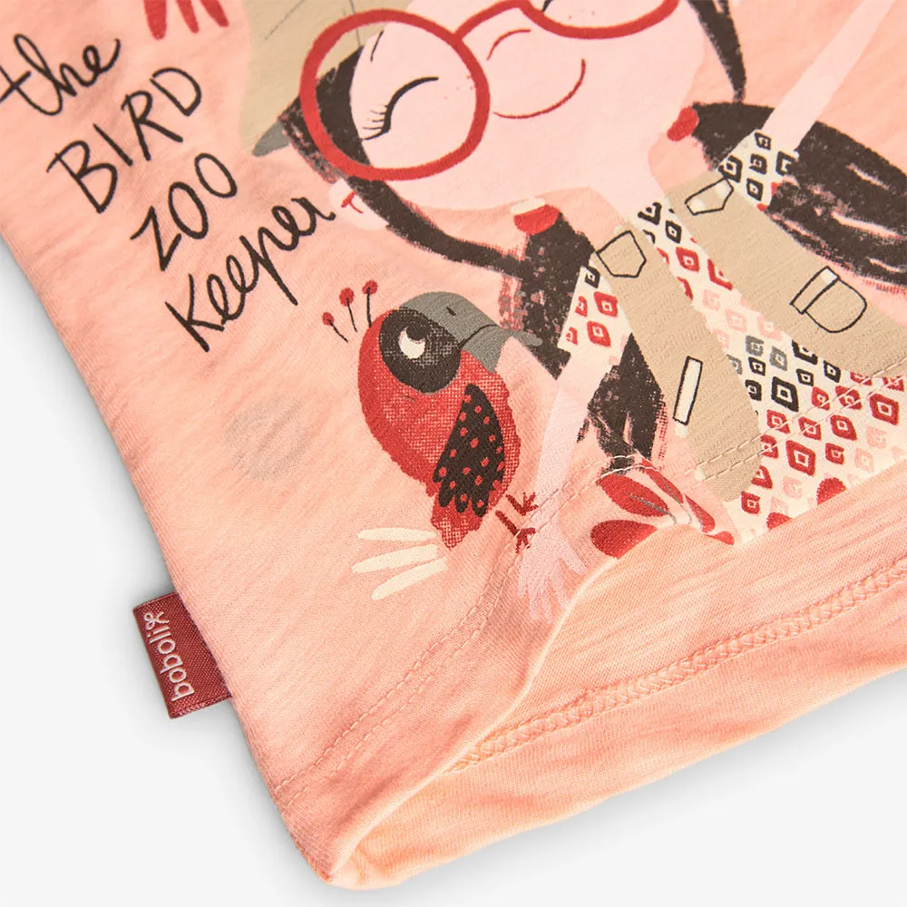 Bluzka ma zabawny wzór z ilustracjami zwierząt, a spodnie mają kolorowy nadruk, który dodaje wesołego akcentu.