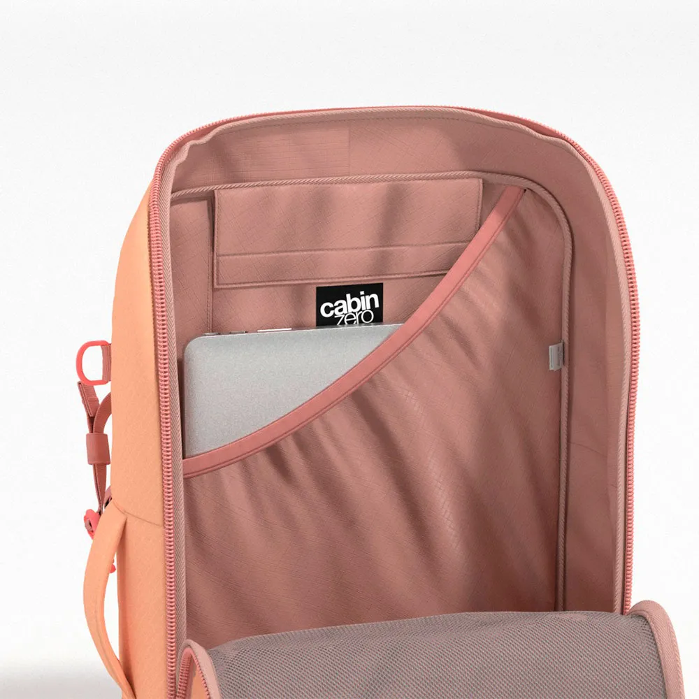 Łączy w sobie wszystkie charakterystyczne cechy toreb CabinZero, w tym szybkodostępną kieszeń na zamek błyskawiczny, komorę główną, którą można ładować od góry lub od przodu, uchwyt na butelkę z wodą oraz chowany pas biodrowy i szelki.