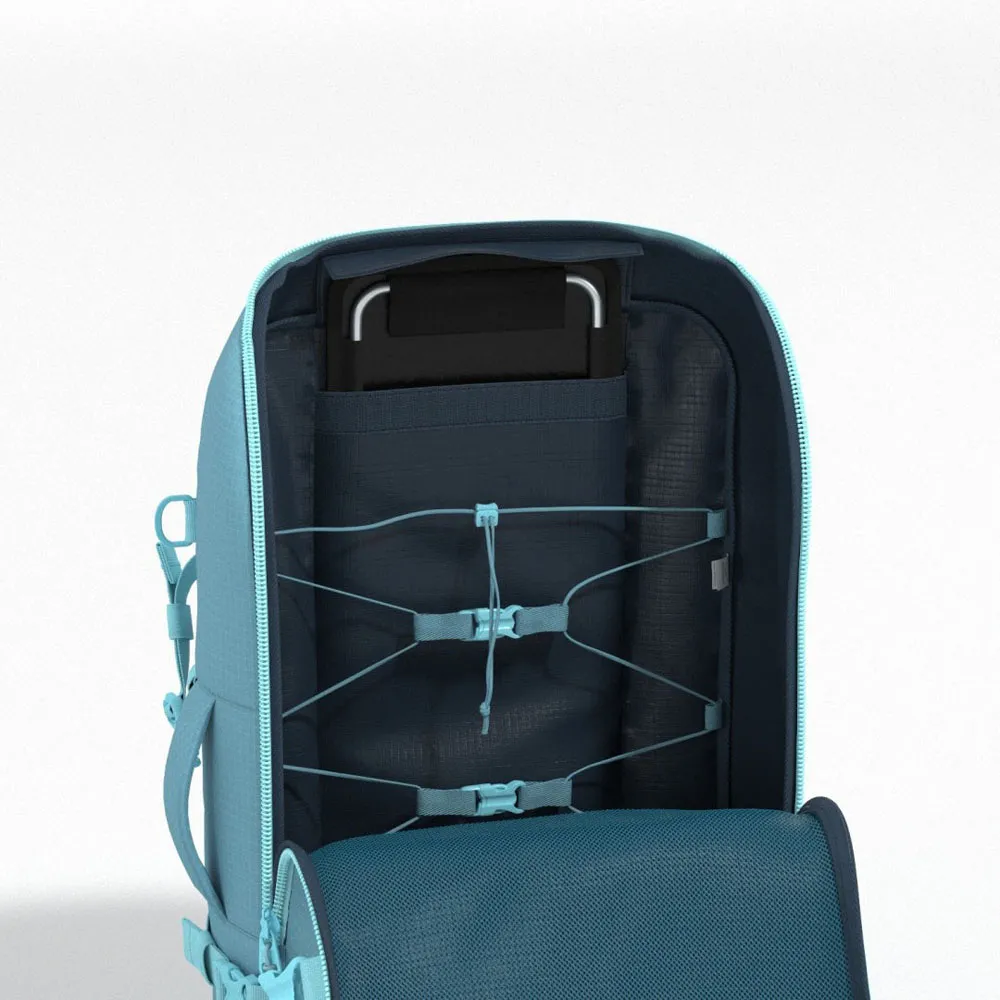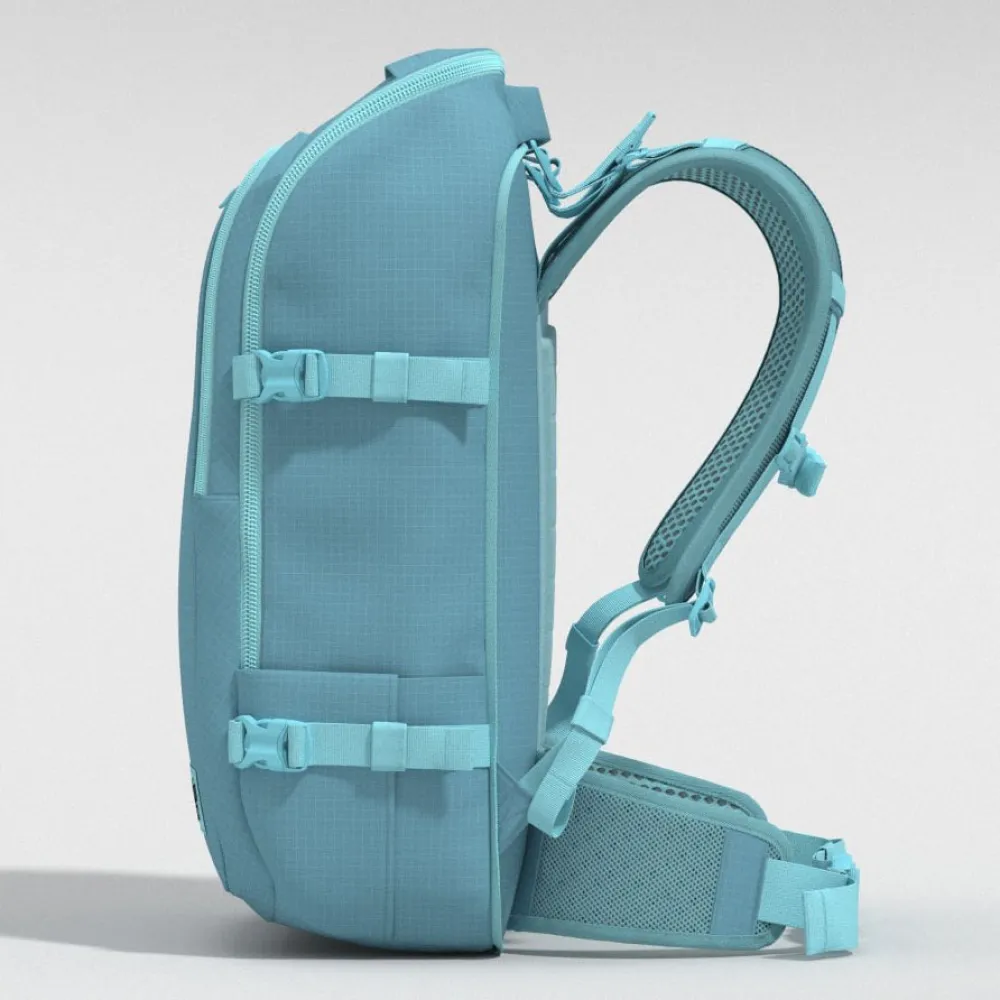 Wytrzymały i praktyczny, posiada wszystkie charakterystyczne cechy CABINZERO, w tym szybkodostępną kieszeń na zamek, komorę główną, którą można ładować od góry lub od przodu, uchwyt na butelkę z wodą oraz chowany pas biodrowy i szelki.