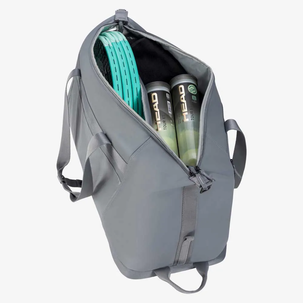 HEAD RACKET Tour L Duffle Bag KG to pojemna i wytrzymała torba zaprojektowana do przenoszenia całego sprzętu tenisowego w stylu. Wykonana z wysokiej jakości materiałów, torba posiada duży główny zamykany na zamek błyskawiczny, który pomieści wiele rakiet, butów i odzieży. Posiada również różne kieszenie na akcesoria, w których można przechowywać mniejsze przedmioty, takie jak piłki, gripy i butelki z wodą.