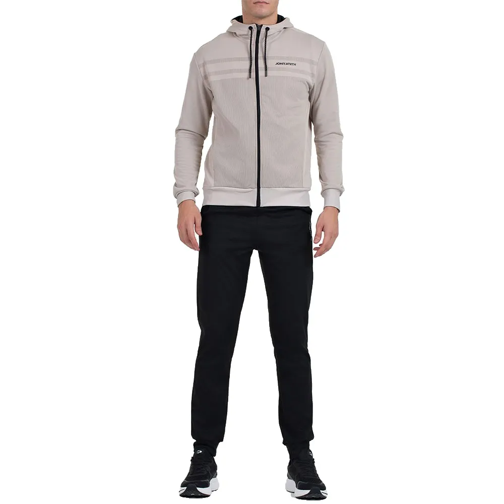 Centralnym elementem tego zestawu jest wszechstronna kurtka, wyposażona w zamek błyskawiczny na całej długości, który umożliwia łatwe warstwowanie i indywidualną kontrolę temperatury. Niezależnie od tego, czy nosisz ją w pełni zapiętą, aby uzyskać elegancki, sportowy profil, czy rozpiętą dla bardziej swobodnego nastroju, dopasowuje się ona bezproblemowo do Twoich potrzeb. Zintegrowany kaptur zapewnia dodatkową warstwę ochrony przed warunkami atmosferycznymi i dodaje odrobinę miejskiego stylu do Twojego stroju. Kurtka stanowi odważne stwierdzenie, prezentując efektowny geometryczny nadruk graficzny z przodu, który wyróżni Cię z tłumu dzięki swojemu nowoczesnemu i energetycznemu wzornictwu. Funkcjonalność jest kluczowa, z bezpiecznymi kieszeniami na zamek błyskawiczny, idealnymi do przechowywania telefonu, kluczy i portfela, podczas gdy kultowe logo firmowe na klatce piersiowej symbolizuje autentyczną jakość i dziedzictwo marki John Smith.