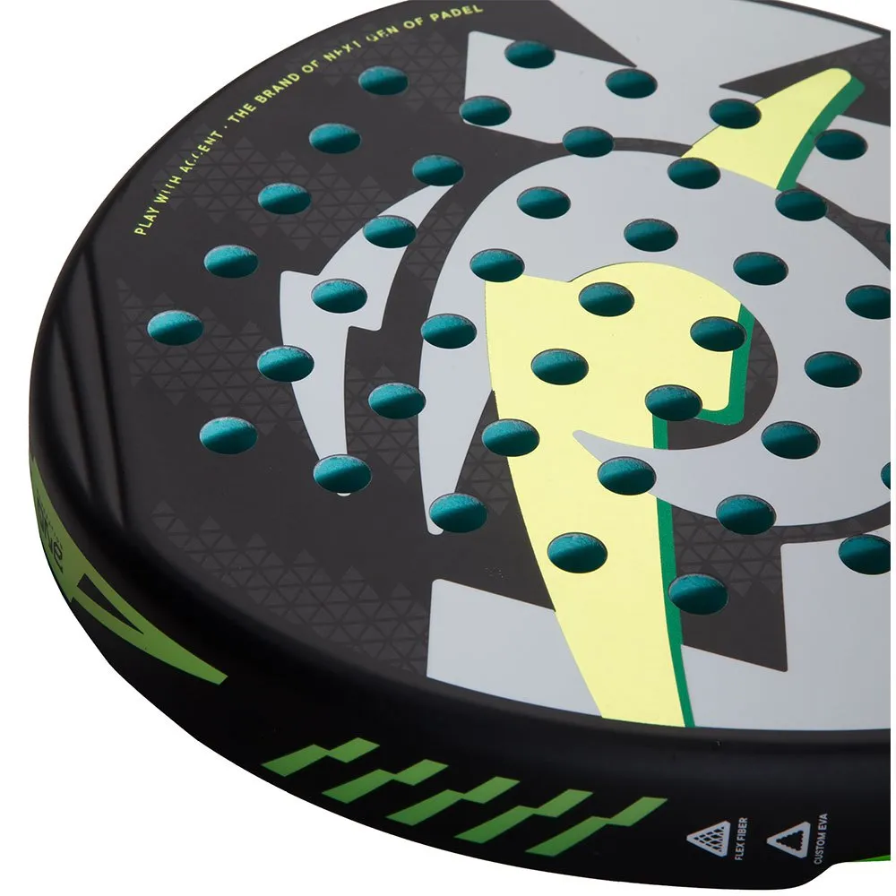 - Węgiel mieszany. W kolekcji Generation ONE pracujemy z węglem w trzech różnych płaszczyznachDzięki tej technologii możemy dostosować kąty łączenia warstw włókien, aby uzyskać odpowiednią elastyczność. Własna guma EVA: Nasze rakiety Generation ONE mają unikalną gumę o doskonałej pamięci, która pomaga graczowi uzyskać większą moc podczas uderzenia. Pamięć to zdolność gumy do odzyskania swojej pierwotnej pozycji w krótszym czasie po uderzeniu piłki. Dzięki swojej gęstości guma ta dostosowuje się do każdego gracza i jest dostępna w ekskluzywnym zielonym kolorze zgodnie z linią korporacyjną marki.