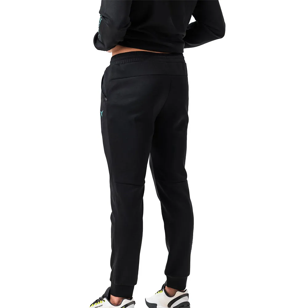 Seu design combina o elegante tom preto com detalhes na cor verde. Para garantir a aderência, incorporamos um cós elástico e ajustável com cordão personalizado. Para fornecer suporte, as extremidades das calças possuem um punho que permite que sejam ajustadas ao tornozelo. Ambos os lados possuem um bolso com zíper que permitirá que você guarde a bola ou outros objetos com segurança e conforto.