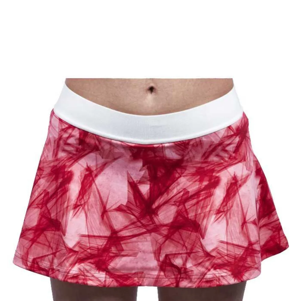 Na nova coleção de têxteis de padel Drop Shot 2021, encontramos a saia de padel Lyra, com um design inovador que combina o vermelho e o branco, bem como calções interiores.