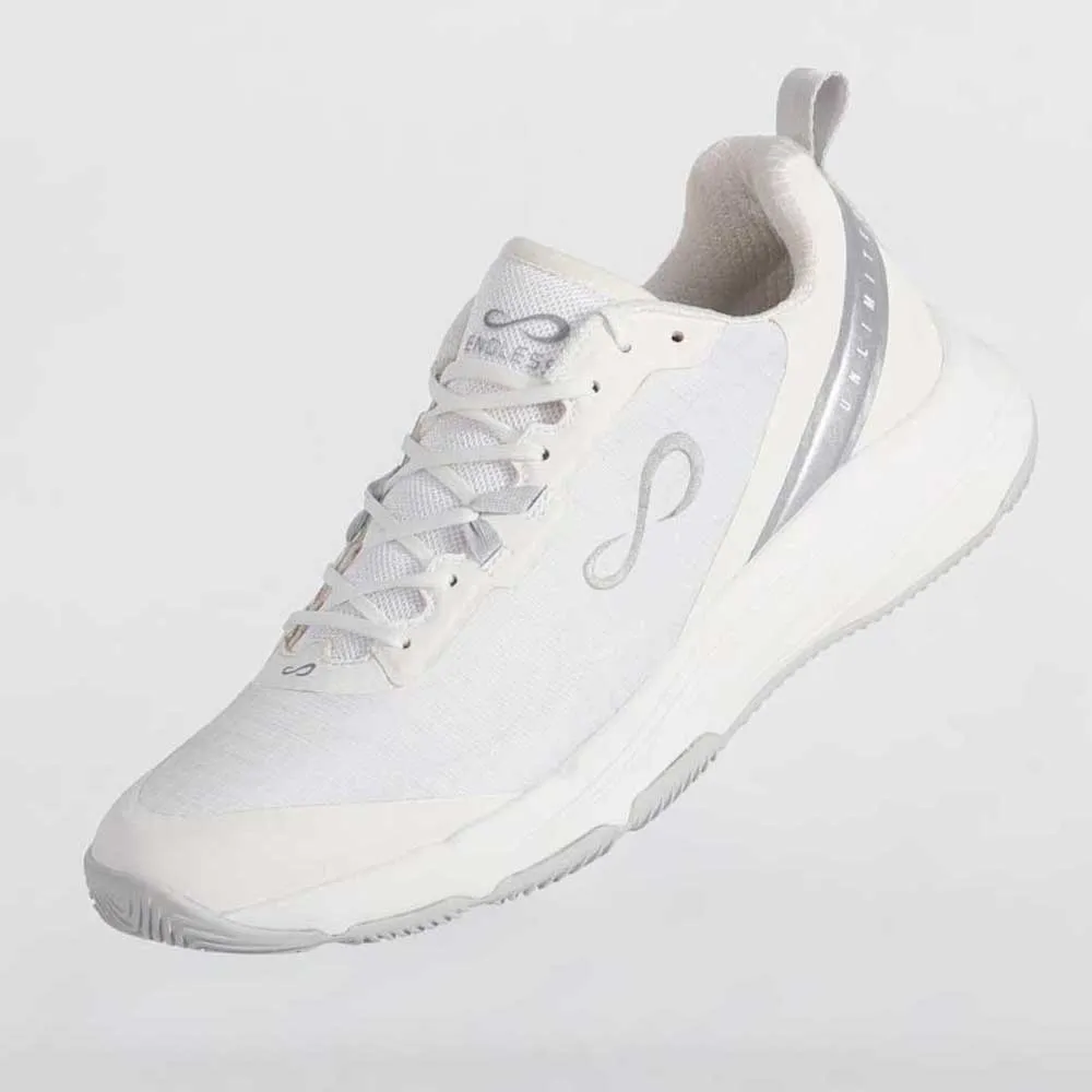 Eleve o seu jogo com o Endless® Infinity Pro, o calçado de padel desenhado de raiz para mulheres. Esqueça os calçados masculinos adaptados; o Infinity Pro é projetado para a biomecânica feminina, priorizando a estabilidade e a segurança para reduzir o risco de lesões. Desfrute de conforto infinito com uma palmilha moldada extra macia e uma biqueira mais larga. Um calcanhar mais alto protege o seu tendão de Aquiles, enquanto sistemas de suporte avançados e uma sola com aderência em espinha de peixe profunda lhe dão a confiança para se mover livre e poderosamente em qualquer campo. Liberte o seu desempenho e estilo ilimitados