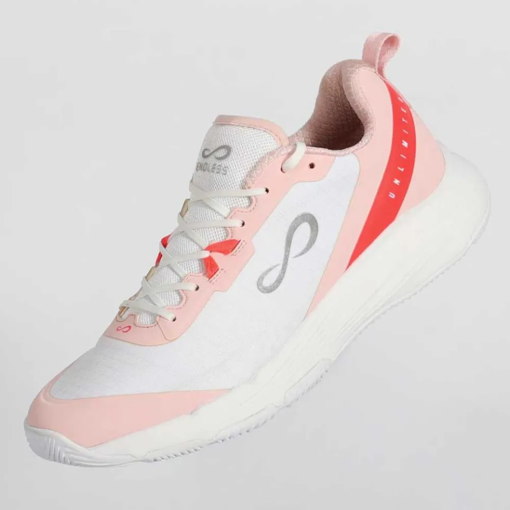 Eleve o seu jogo com o Endless® Infinity Pro, o calçado de padel desenhado de raiz para mulheres. Esqueça os calçados masculinos adaptados; o Infinity Pro é projetado para a biomecânica feminina, priorizando a estabilidade e a segurança para reduzir o risco de lesões. Desfrute de conforto infinito com uma palmilha moldada extra macia e uma biqueira mais larga. Um calcanhar mais alto protege o seu tendão de Aquiles, enquanto sistemas de suporte avançados e uma sola com aderência em espinha de peixe profunda lhe dão a confiança para se mover livre e poderosamente em qualquer campo. Liberte o seu desempenho e estilo ilimitados