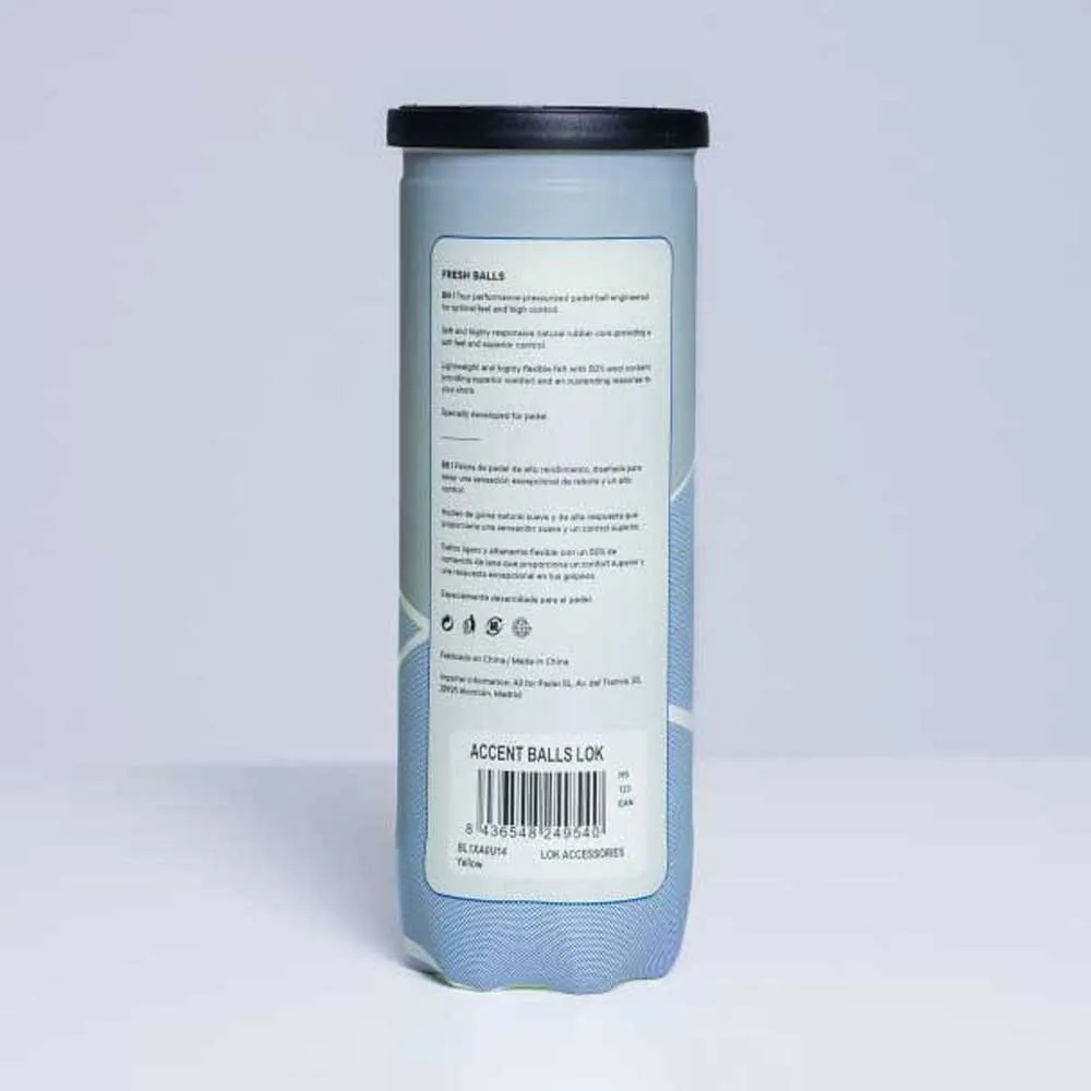 As bolas LOK Accent são a escolha perfeita para tirar o melhor de si. Feitas com materiais de alta qualidade, são projetadas para durar mais partidas do que se pode esperar. Seja qual for o seu nível, estas serão as suas bolas. Dê golpes insanos e desfrute de um jogo fluido na quadra de padel.