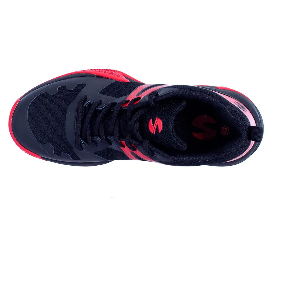 Possui sola mista (dois pitões) que proporcionam máxima aderência ao solo da quadra.