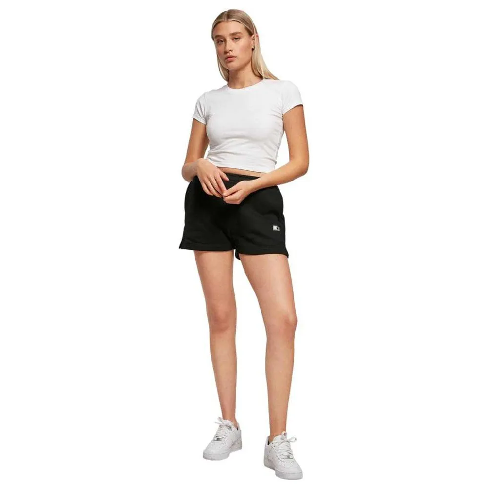 Os shorts de cor única para mulheres são projetados como um mini comprimento curto e com pernas finamente cortadas. O cós elástico largo e o material polar escovado utilizado tornam-nos companheiros desportivos e confortáveis e o corte largo e folgado combina na perfeição. O short feminino também é equipado com dois bolsos laterais – o esquerdo é decorado com um patch Starter bordado.