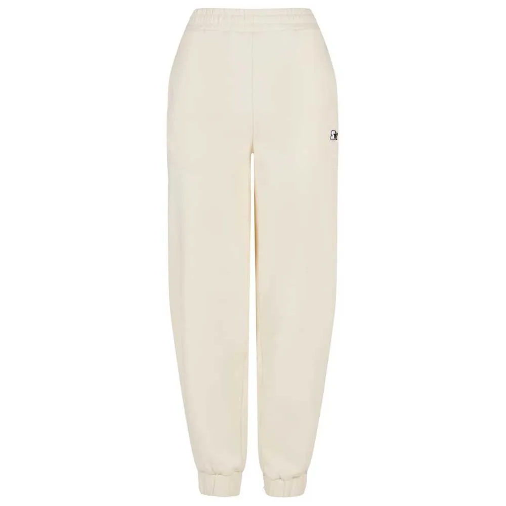 Esta calça de moletom feminina combina conforto de uso com um visual casual e moderno. O caimento solto das calças básicas de lazer está sendo acompanhado por um confortável tecido de lã escovado, bem como cós elástico e punhos elásticos. Os joggers também estão equipados com bolsos laterais e são marcados com um pequeno logotipo Starter bordado sob o bolso esquerdo.