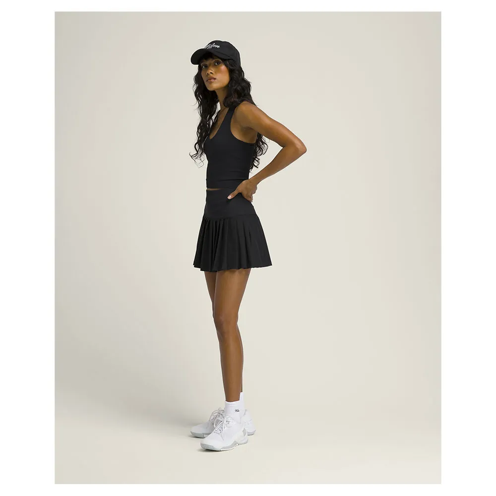 A saia de tênis mais elegante e confortável; um short interno sem costura com uma saia plissada sobreposta. Um século de tênis nos trouxe até aqui, pegando algo simples e tornando-o melhor. A Saia Midtown é a nossa versão da saia de tênis tradicional, um short interno sem costura com uma saia plissada sobreposta. Use-a para jogar tênis ou faça mais - com proteção UV, tecido exclusivo e design multifuncional. O short interno, que vai até a parte superior da coxa, tem um bolso e nosso cós de compressão em camadas patenteado proporciona um ajuste perfeito.
