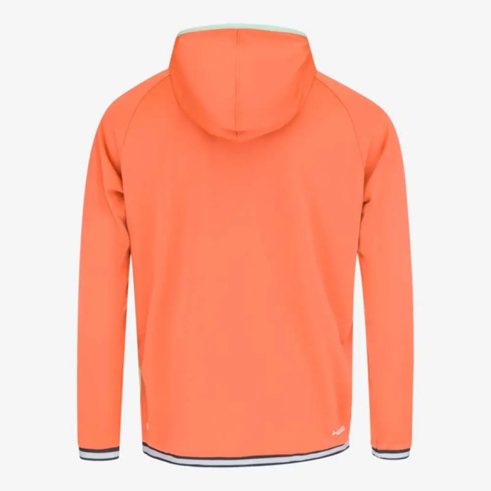 Vibrerande färg kombineras med modern komfort i Topspin-huvtröjan för män, som är idealisk för att resa till domstolen eller för uppvärmning. Luvtröjan är skuren av 100 % polyesterfransk frotté och har huvudets egen fuktöverföringsmikrofiberteknologi, som ger en kylande effekt samtidigt som den låter tyget torka snabbt. Tillsammans med en känguruficka och en halvfram dragkedja med hakskydd, inkluderar funktionerna elastisk tejp med kontrastögla vid fållen och ärmöppningar. Nacktejpen med huvudmärkt och önskebenslogotypen lägger till premium, sportig estetik.