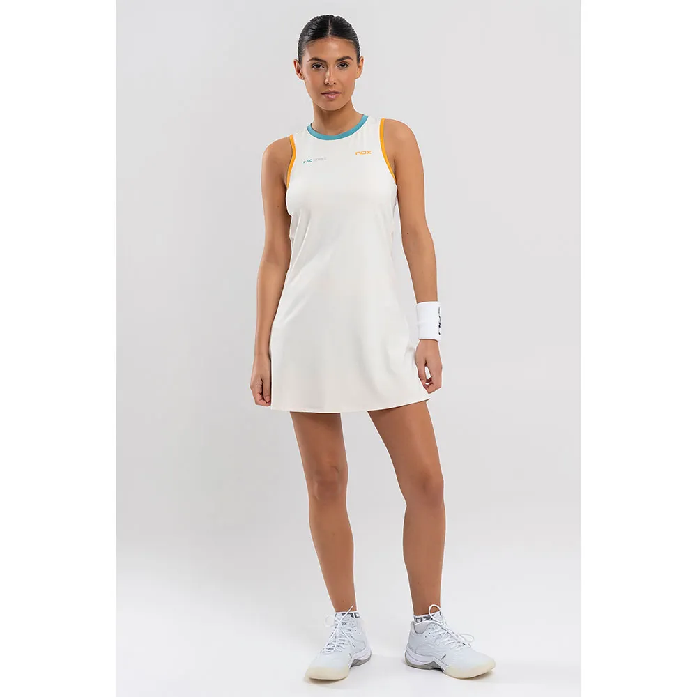 Släpp loss din inre atlet med den ärmlösa klänningen NOX Pro. Designad för den moderna kvinnan som kräver topprestanda, är denna klänning din ultimata följeslagare för intensiva padelmatcher. Dess ärmlösa snitt säkerställer full rörelsefrihet för kraftfulla slag, medan avancerat fuktavledande tyg håller dig sval, torr och fokuserad under press. NOX Pro blandar sömlöst högpresterande funktioner med en elegant, modern estetik, vilket skapar en smickrande look som låter dig dominera planen med fullständig komfort och självförtroende. Upplev skillnaden och lyft ditt spel