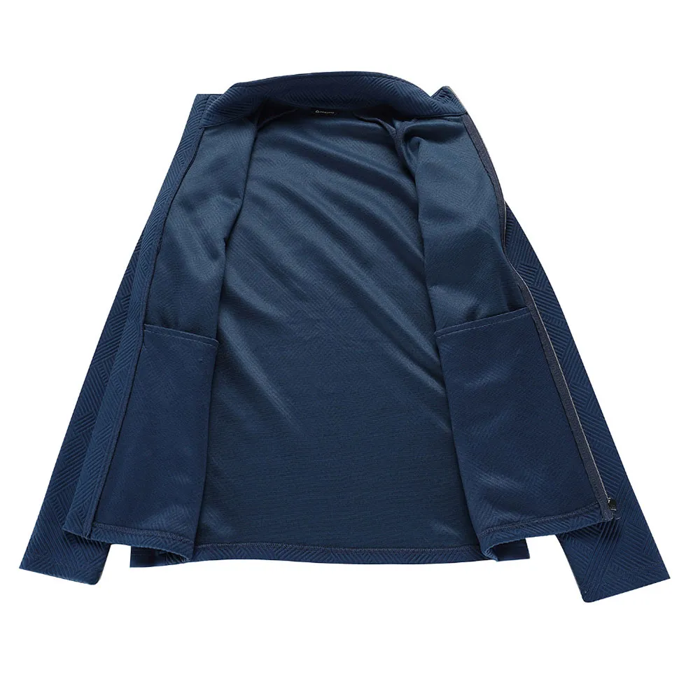almindelig pasform, lang kontrastfarvet lynlås, hagebeskytter, lommer i alt 2, forlomme med lynlås, print på forsiden.