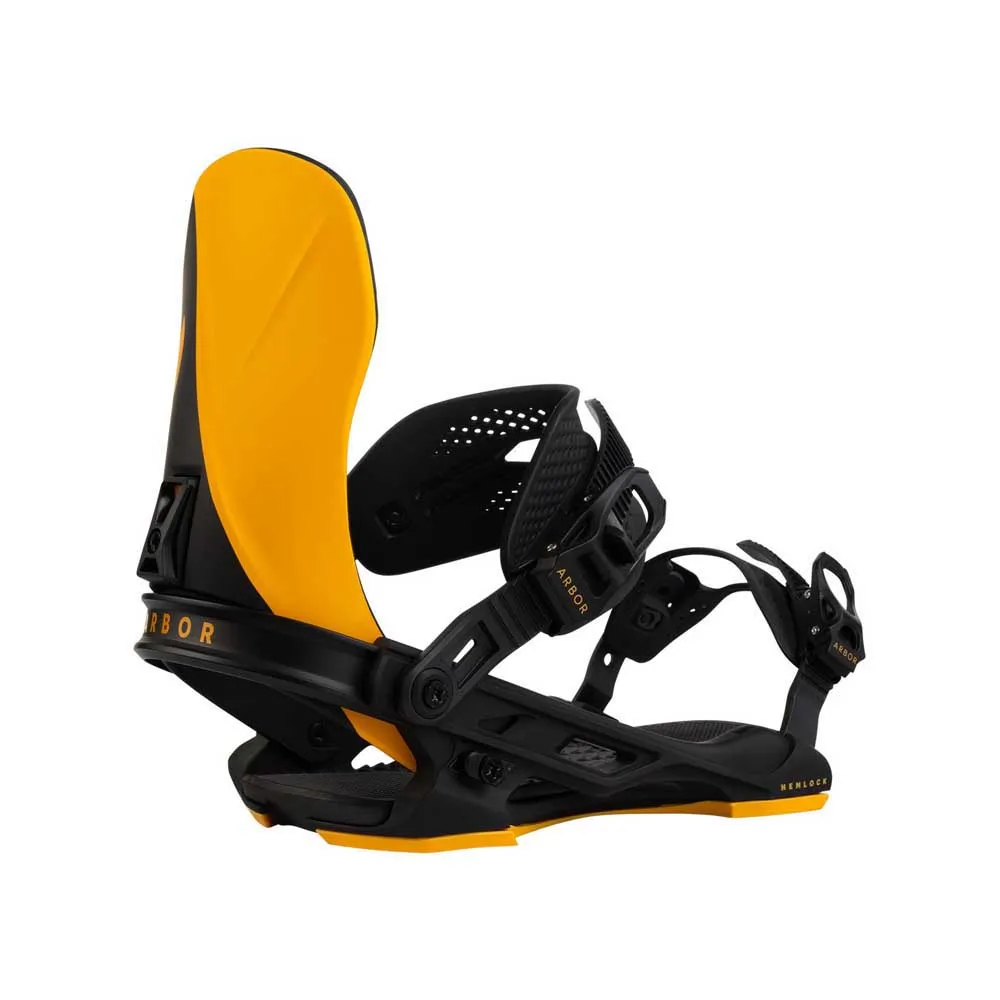 ARBOR Hemlock snowboardbindingerne i Black / Candle er et stilfuldt og højtydende valg til snowboardere på alle niveauer. Disse bindinger er designet til at give fremragende respons og kontrol på bjerget takket være deres robuste konstruktion og avancerede funktioner.