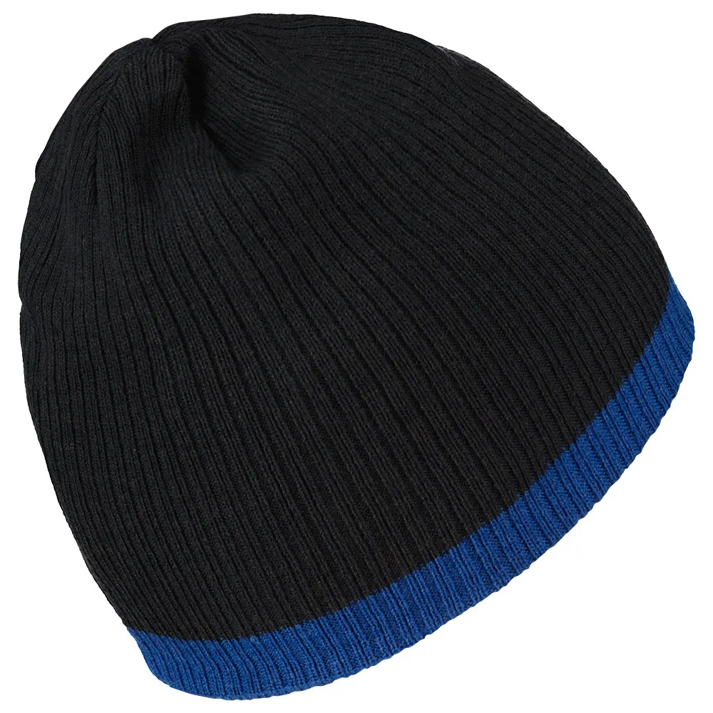 Klassisk, fin ribstrikket hue med vendbar dobbeltlagskonstruktion.
