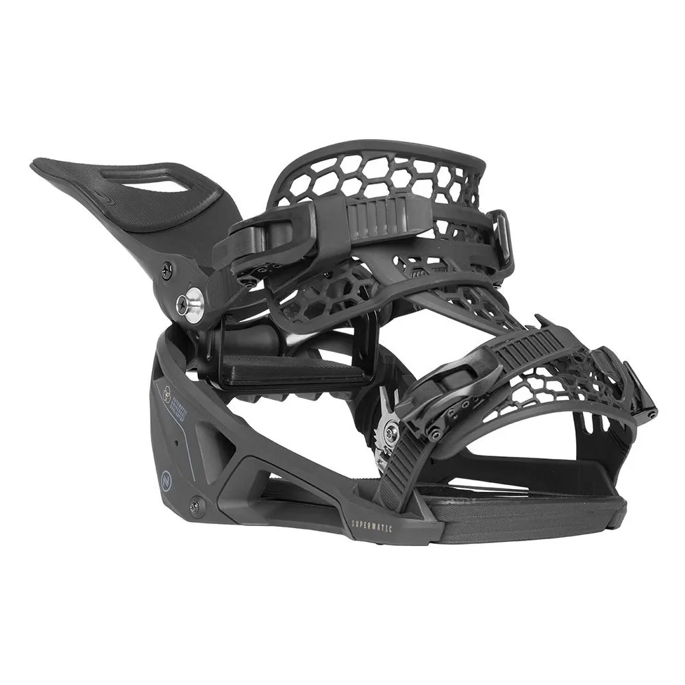 Oplev toppen af snowboardfrihed og lydhørhed med Nidecker Supermatic-bindingerne. Supermatic er designet til voksne ryttere, der søger en unisex-binding, der udmærker sig under alle forhold, og kombinerer problemfrit banebrydende teknologi med intuitiv komfort.