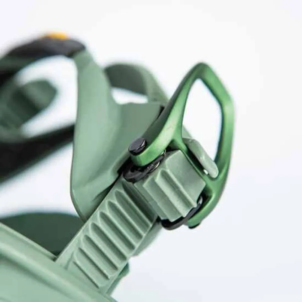 - Disse S-formede ratches remme forbliver ude af din vej, når du træder ind i bindingen. Den brede mund spænde tragt hjælper dig med at guide ratcheten til en ultra hurtig, præcis bid af dine spænder.