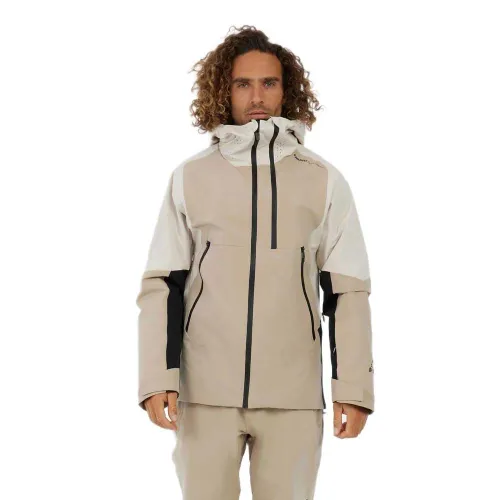 Denne snejakke er bygget til maksimal ydeevne og har genanvendt materiale, pvre green, slidstærk vandafvisende finish, er hjelmkompatibel, har mekanisk stretch, 20g åndbarhed og 20K vandtæthed for total selvtillid på bjerget.