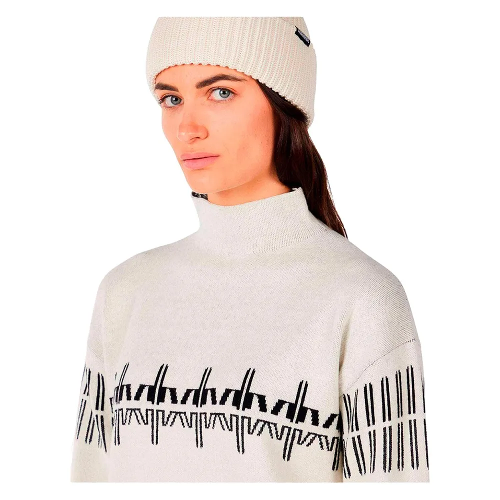 Omfavn toppen af alpe-elegance og uovertruffen komfort med ROSSIGNOL mønstrede rullekrave-sweater til kvinder. Omhyggeligt designet til dem, der værdsætter både stil og substans, er denne sweater et vidnesbyrd om Rossignols rige bjergarv. Det indviklede, nordisk-inspirerede jacquardmønster fremkalder tidløs vintercharme, hvilket gør den til et fremragende stykke tøj til enhver koldvejrslejlighed, fra en frisk byvandring til afslapning ved en knitrende pejs efter en dag på pisterne. Dens sofistikerede design sikrer, at du ser ubesværet chik ud, mens du forbliver vidunderligt varm.