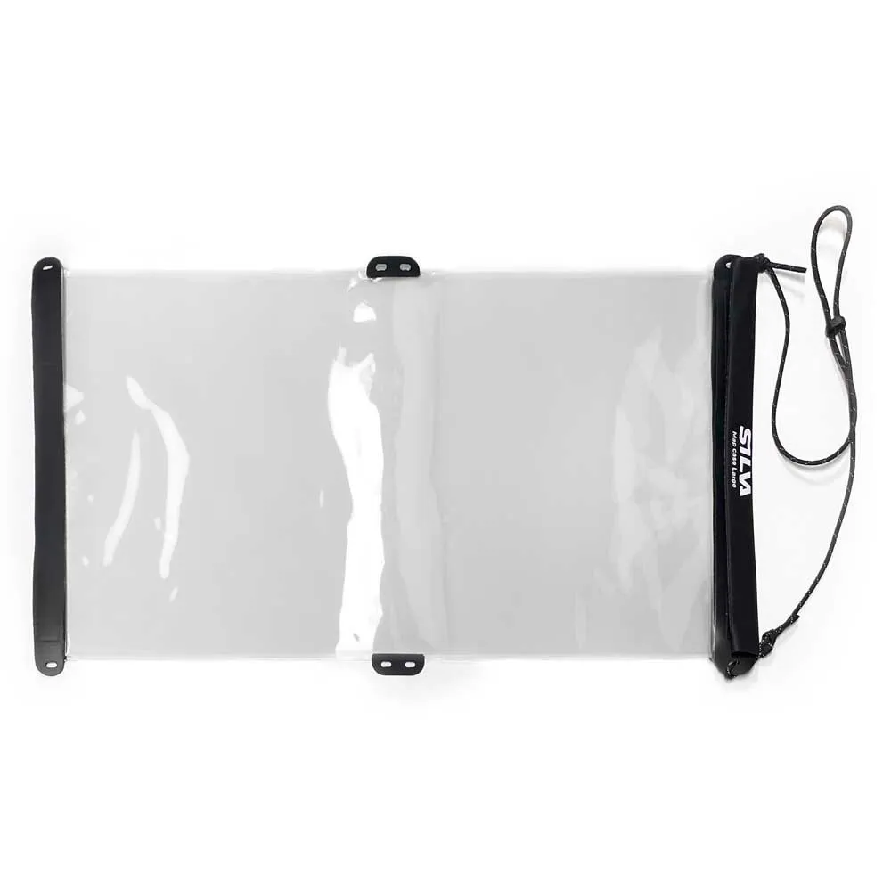 - Kortmappen er gennemsigtig på begge sider, så du kan se kortet uden at tage det ud af mappen. Den er også touchscreen-kompatibel, så du kan placere din telefon i mappen og bruge touchskærmen. Kortmappe Stor har indvendige mål på 265x480 mm, der passer til OS-kort, og udvendige mål på 297x535x7 mm. Vores vandtætte kortmapper fås også i lille og mellem.