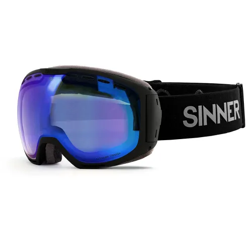 The sinner mohawk er en teknisk skibrille udstyret med en trans+® linse. Trans+® linsen (fotokromisk) tilpasser sig vejret: linsen mørkner i solskin og lyses op i overskyet/mørk vejr. Dette sker på et splitsekund, hvilket reducerer øjentræthed. Linsen er også belagt mod kondens og tilbyder 100% uv-beskyttelse. Brillerne passer perfekt under en hjelm, dels fordi brillernes strop er justerbar, har et anti-slip-print og et bevægeligt støttebenssystem. Den bløde skumbelægning er allergivenlig og giver ekstra komfort.