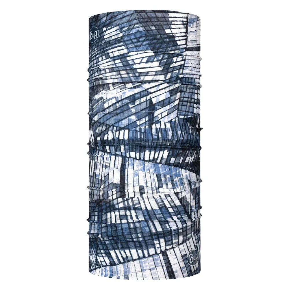 Leichte multifunktionale Halsbekleidung aus recycelten Plastikflaschen mit UPF 50-Sonnenschutz und reflektierenden Details für zusätzliche Sichtbarkeit bei schlechten Lichtverhältnissen.