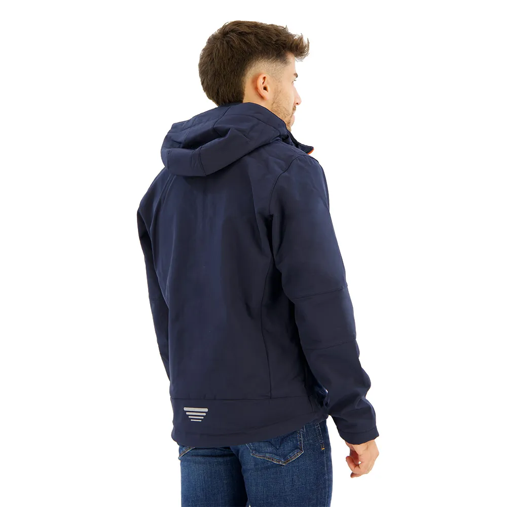 Herren Softshelljacke mit abnehmbarer Kapuze, die vor schlechtem Wetter schützt.