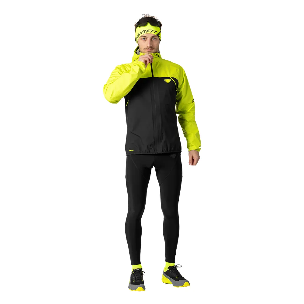 Bleiben Sie schnell, trocken und geschützt auf den Trails mit der DYNAFIT Alpine 3L Jacke. Diese ultraleichte Hardshell ist vollständig wasserdicht und hoch atmungsaktiv, dank ihres 3-Lagen Dynashell-Gewebes. Ihr herausragendes Merkmal ist das innovative ZipOver Rucksacksystem – ein Reißverschluss am Rücken, der sich erweitern lässt, um Ihren Laufrucksack zu bedecken und so Ihre Ausrüstung trocken hält. Sie bietet volle Bewegungsfreiheit, aktive Belüftung und ein winziges Packmaß, das sich in ihrer eigenen Kapuze verstauen lässt, und ist somit der unverzichtbare Wetterschutz für jeden Berglauf