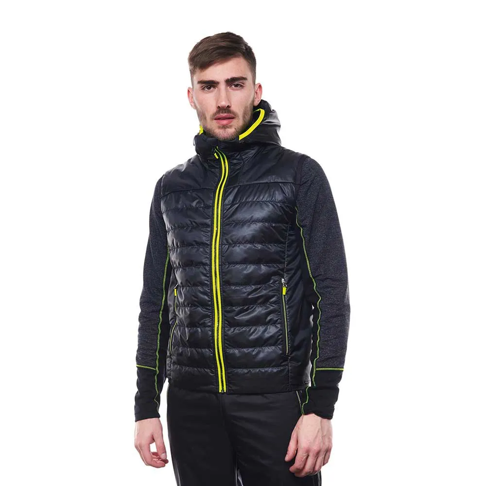 Unsere wattierte Weste ´´TOUR´´ hält den Körper dank ihrer Primaloft®-Füllung warm und vor allem trocken. Die Primaloft®-Isolierung setzt Maßstäbe für Komfort bei allen Bedingungen. Sie hat genau die Eigenschaften, die Ihren Komfort garantieren: Wärme ohne großes Volumen, Weichheit und geringes Gewicht, wasserabweisend und komprimierbar wie Gänsedaunen. Der kontrastierende durchgehende Frontreißverschluss endet in einer Reißverschlussgarage zum Schutz des Kinns. Zwei Reißverschlusstaschen an den Seiten bieten viel Stauraum und die Kapuze schützt den Kopf vor Wind und Wetter.