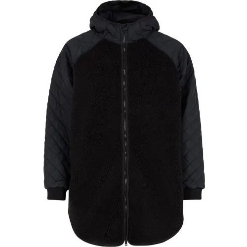 -Teddy, Regular Fit, Langarm, Lange Länge, Feste Kapuze, Voller Reißverschluss, Zweiseitiger Reißverschluss.