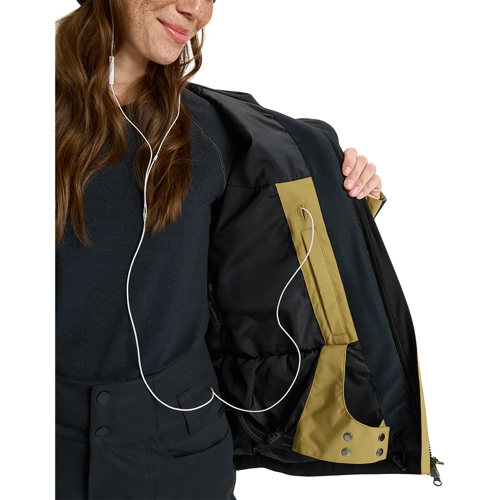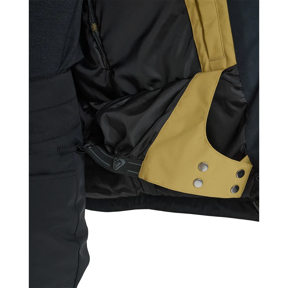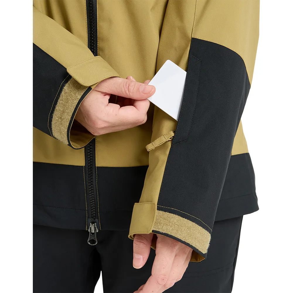 Taschen: 2 Handwärmertaschen mit Reißverschluss und Schlüsselclip, 2 Brusttaschen mit Reißverschluss, interne Medien- und Mesh-Skitasche, Ärmelpasstasche.