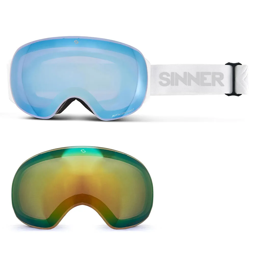 Die SINNER AVON Skibrille ist rahmenlos und bietet ein extrem großes und weites Sichtfeld. Sie wird mit zwei austauschbaren magnetischen SINTRAST®-Scheiben geliefert: einer orangefarbenen SINTRAST®-Spiegelscheibe der Kategorie 1 und einer blauen SINTRAST®-Spiegelscheibe der Kategorie 3. Diese Scheiben machen die Skibrille für alle Wetterbedingungen geeignet. Die SINTRAST®-Scheiben wurden speziell für Schneelandschaften entwickelt und bieten eine extrem klare und scharfe Sicht mit hohem Kontrast, wodurch Details noch besser sichtbar werden. Beide Scheiben bieten 100 % UV-Schutz und verfügen über eine spezielle Anti-Beschlag-Beschichtung, um das Beschlagrisiko zu minimieren. Für einen perfekten Sitz ist diese Skibrille mit einem verstellbaren, rutschfesten Kopfband und einem praktischen Outtrigger-System ausgestattet, damit sie immer sicher an ihrem Platz bleibt.