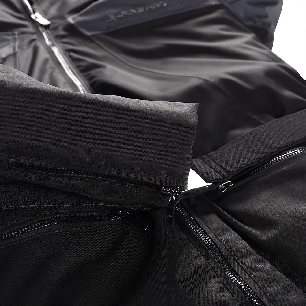 The flexible and highly breathable material with PTX SNOW membrane and special DWR treatment achieves a water column of 10000 mm and a vapour permeability of 10000 g/m2/24h.