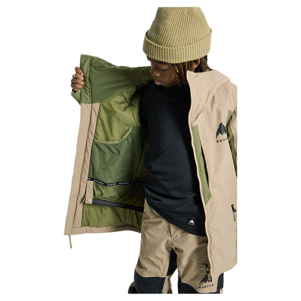 Give your young ripper big-kid performance with the Burton Hillslope 2L Jacket. Its clean, minimalist style hides serious tech for the mountain. A durable, two-layer waterproof shell and breathable ThermacoreECO insulation keep them warm and dry all day long. Smart, rider-designed features like a full suite of pockets, a waist gaiter, and a media port deliver pro-level function. Best of all, the Room-To-Grow system extends the sleeves to keep up with growth spurts, making this a jacket that’s built to last