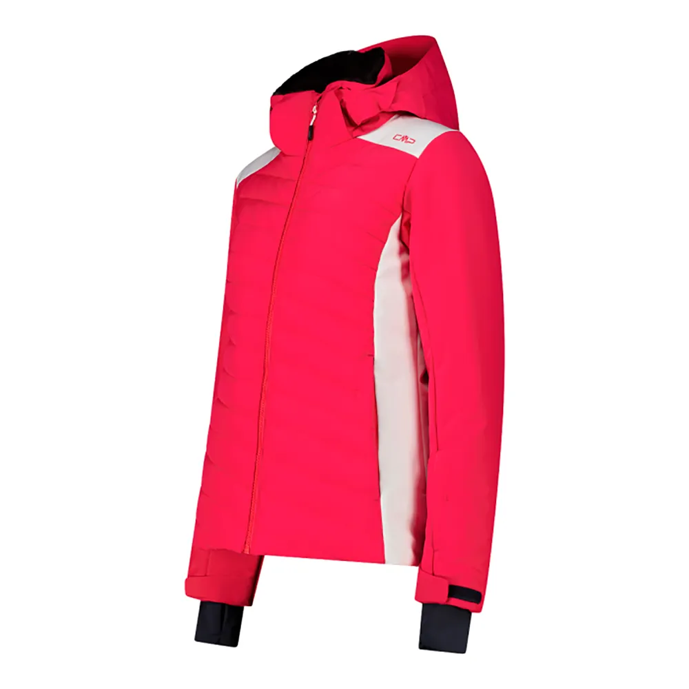 The garment is completed with an inner snow skirt, Lycra cuffs with thumb holes, an adjustable hem with drawstring, two side zip pockets and a ski pass pocket on the sleeve.