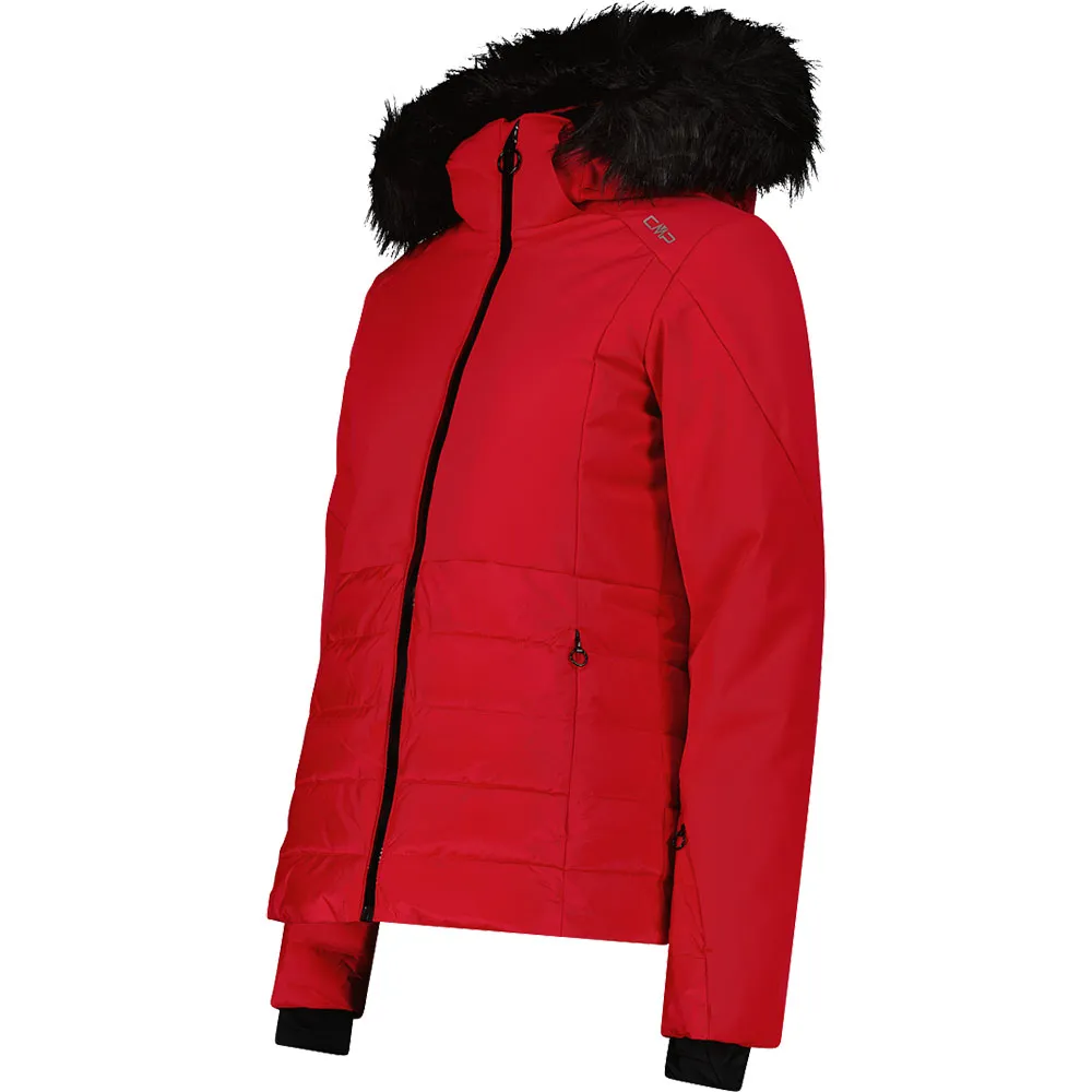 The garment is completed by the detachable hood with faux fur, the front zip with windproof and anti-friction flap, the adjustable hem with drawstring, two side pockets with zip and ski pass pocket on the sleeve.