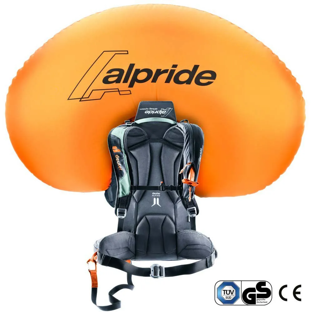 - The updated, fully electronic Alpride E2 avalanche airbag system, which features the latest supercapacitor technology, is one of the lightest electronic systems on the market and unaffected by low temperatures. In addition to fast, high-pressure deployment, this proven technology has huge advantages when it comes to maintenance and transport compared to traditional cartridge-powered airbags. An LED status display and trigger action on the outside of the bag makes it easy to assess the system and activate it. Operation is extremely intuitive and is easy to learn during pre-season practice sessions.