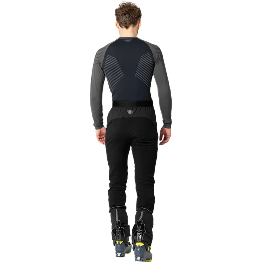 Engineered for fast ski tours, the DYNAFIT Speed Dynastretch Pants feature a smart hybrid construction for peak performance. A wind-resistant softshell front protects you from the elements, while a breathable, brushed stretch fabric on the back ensures maximum freedom of movement and comfort. These slim-fit pants have a cozy brushed interior for warmth, articulated knees, and an adjustable waist for a perfect fit. The versatile hem adjusts to fit both ski touring and outdoor boots, and reflective details enhance visibility in low light