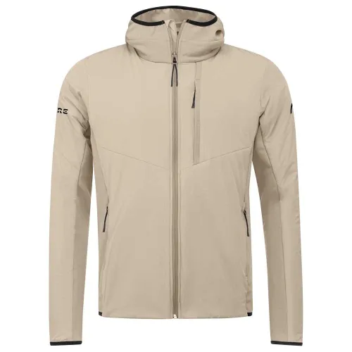 Off-piste, you can move freely and keep warm with the KORE INSULATION JACKET MEN. Made with stretch fabrics, the technical hybrid midlayer stretches with you. For enhanced performance, there is elastic binding on the cuff, hem and a fixed, fitted hood, as well as stretch fleece inserts with merino wool content on the sides and under the arms for improved breathability. The jacket also features flatlock seams and a premium finish on the inside.